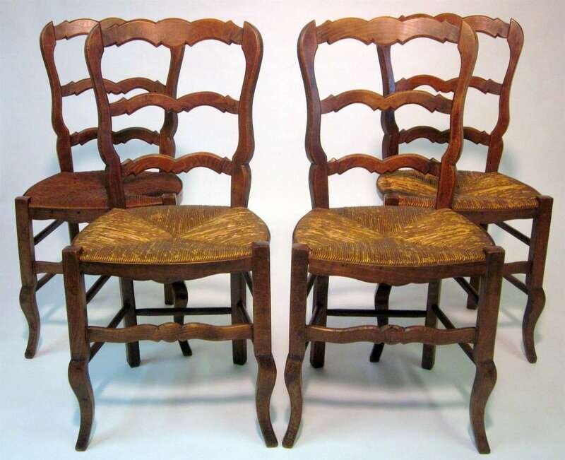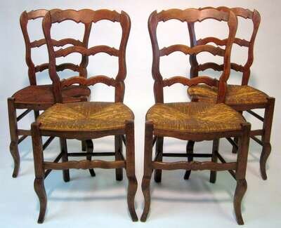 Four French provincial oak rattan upholstered side chairs 19th century