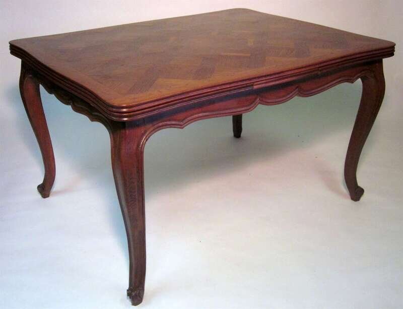 Louis XVI style oak parquetry draw-leaf dining table
