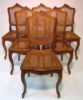 Set of six Louis XVI style cane upholstered side chairs early 20th century