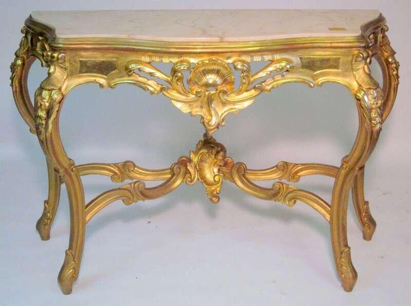 Louis XV style marble top gold leaf console table