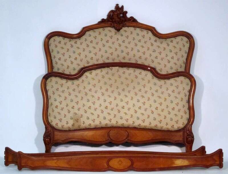 French walnut and upholstered bedstead