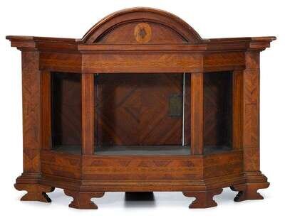 Italian walnut marquetry and parquetry inlaid table cabinet 18th century