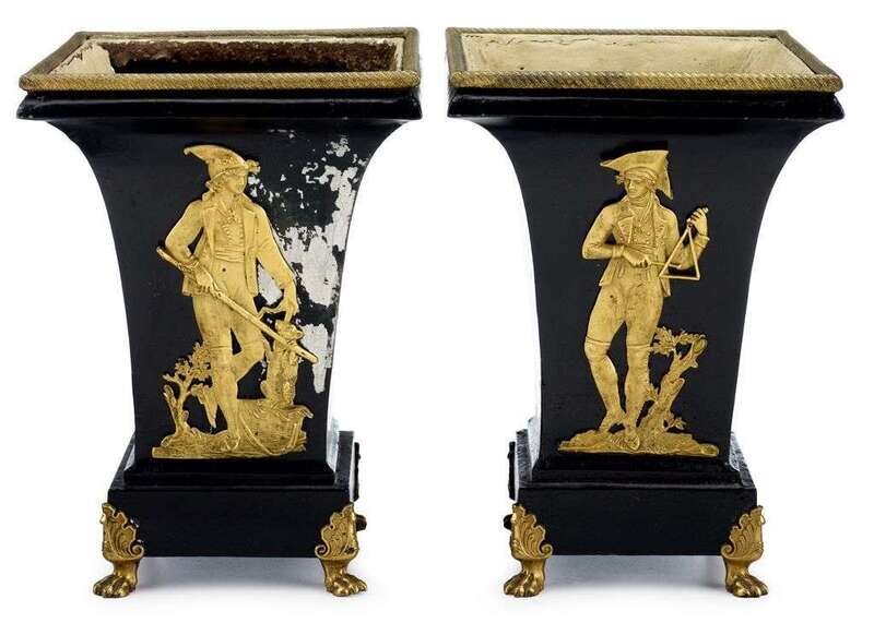 Pair of Charles X gilt metal mounted tole jardinieres circa 1825