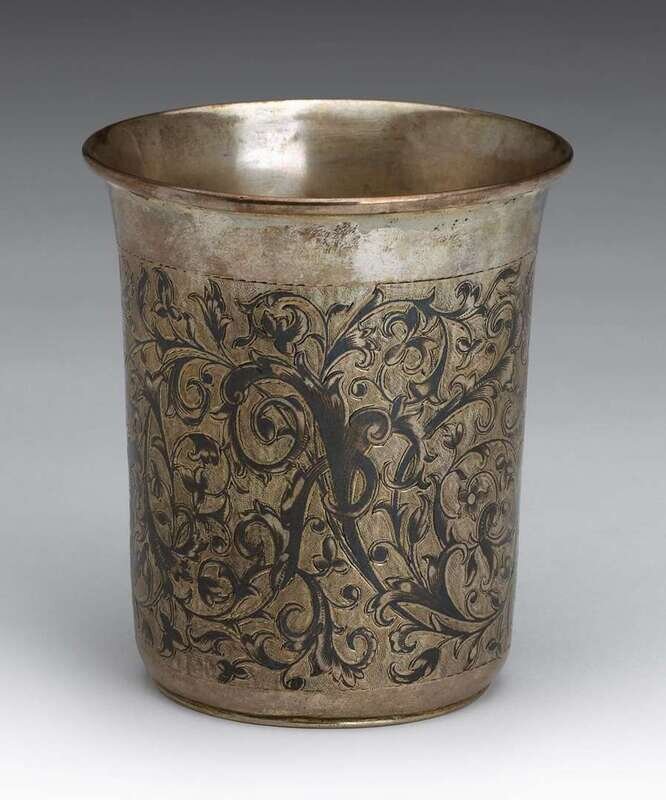 Russian silver niello beaker moscow, 1846, assaymaster andrei kovalsky, maker's mark indistinct