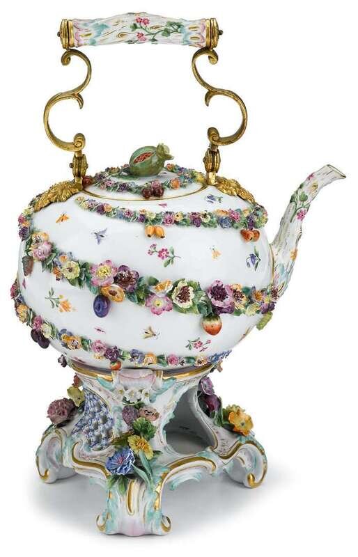 Meissen painted porcelain kettle and stand 19th century