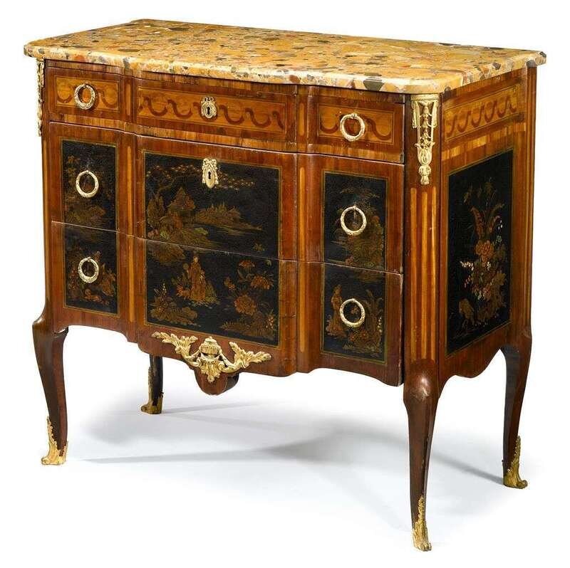 Transitional style gilt metal mounted and lacquered commode