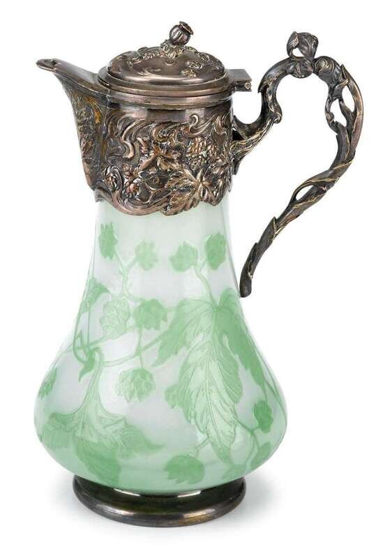 Continental green cameo glass and silver plated jug early 20th century