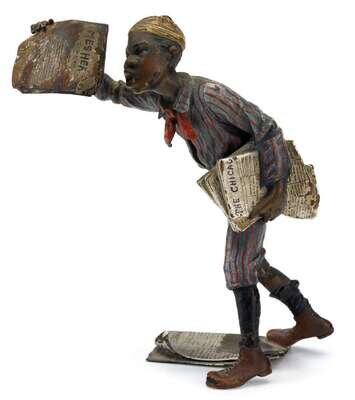 Austrian cold painted bronze figure of a newspaper seller late 19th/early 20th century