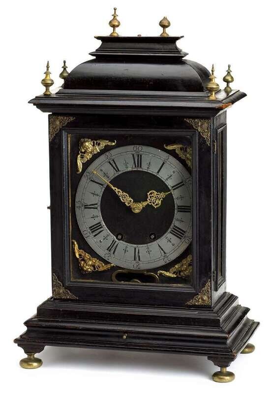French gilt metal mounted ebonized mantle clock 18th century
