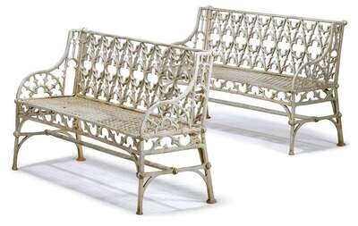 Pair of white painted cast iron garden benches 20th century