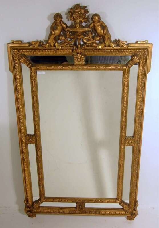 The rectangular plate within typical style frame, surmounted by two putti flanking a floral finial.