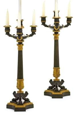 Pair of Empire style gilt and patinated bronze candelabra