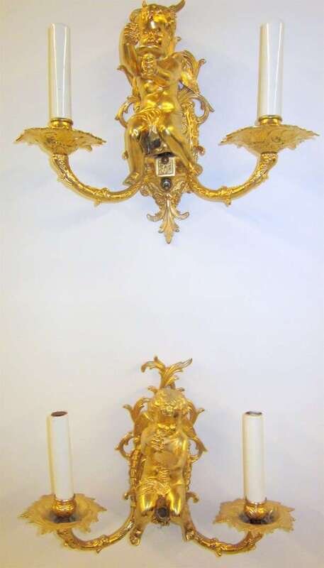 Pair Louis XV style gilt bronze wall sconces