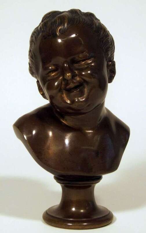 Bronze, dark brown patina, depicting the young boy laughing.