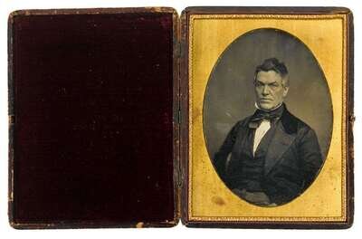 Circa 1850, whole plate daguerreotype in a period leather case with oval brass mat.