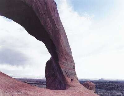 MARK KLETT (AMERICAN B. 1952) "STEPH BENEATH THE GREAT SANDSTONE ARCH"