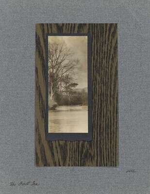Signed, titled and numbered 18 on the mount, dated verso in unknown hand 1908. Gelatin silver print mounted on black paper, on card with printed wood grain and again on gray woven paper.