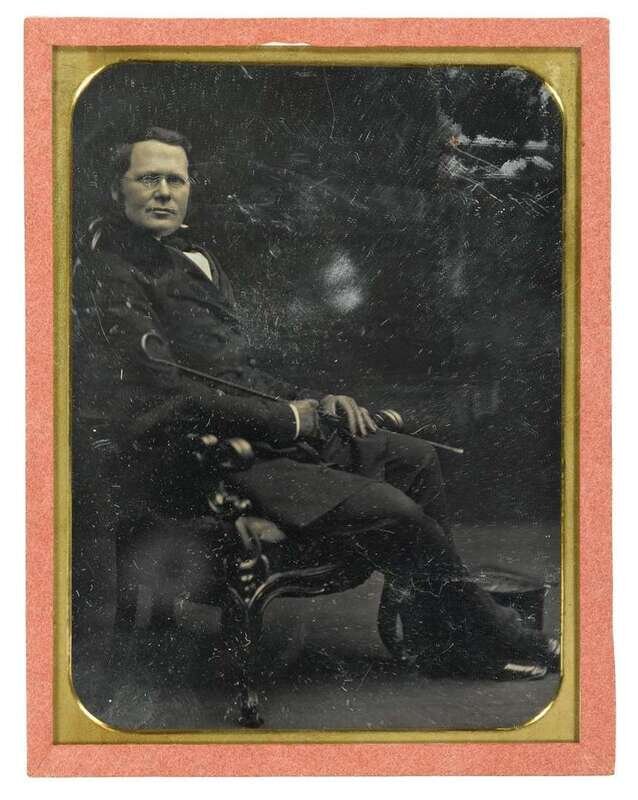 Circa 1850-1855, two half-plate daguerreotypes, both without cases, and the one with elliptical brass mat.