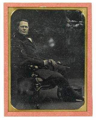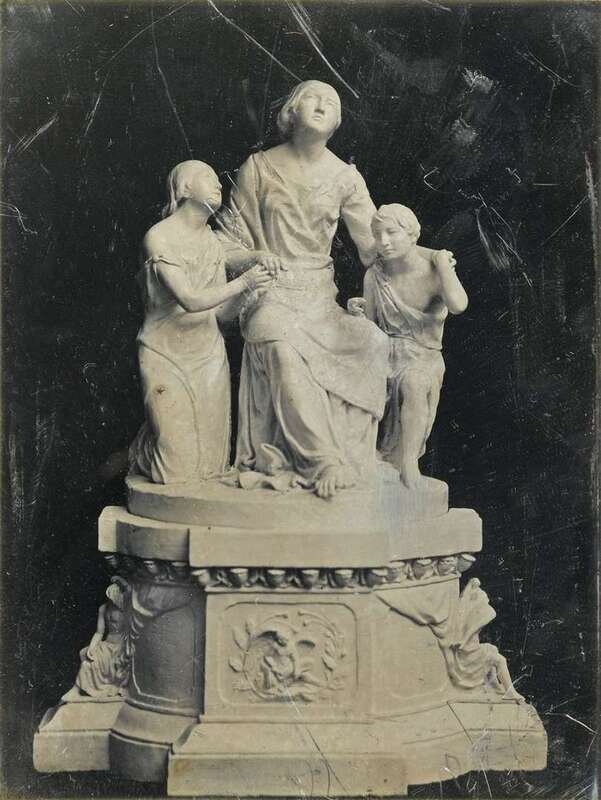 TWO HALF-PLATE DAGUERREOTYPESSOUTHWORTH AND HAWES (AMERICANS, WORKING 1843-1863) SEATED MAN AND MARBLE STATUE (POSSIBLY FROM MOUNT AUBURN CEMETERY)