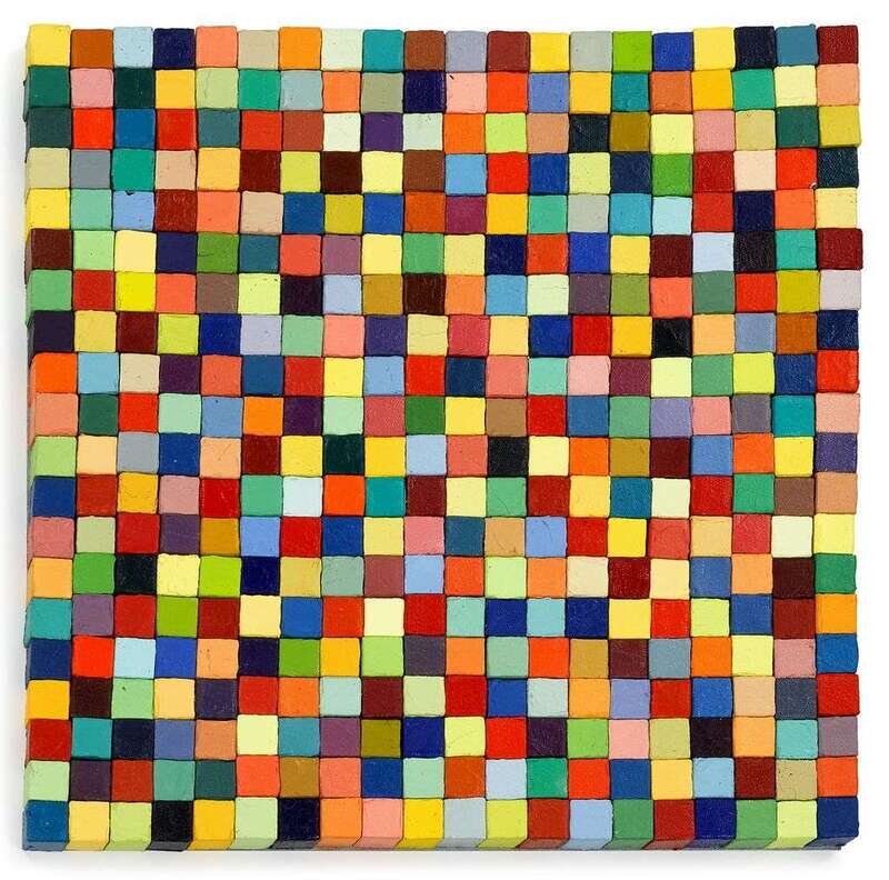 Signed twice, titled, dated 1998 and inscribed '20² = 401' and 'Pomona CA Summer of 1998' verso, oil on canvas with magnet inserts attached to metal plate