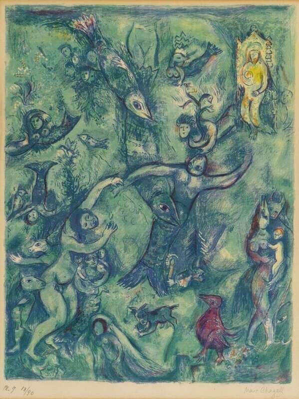 MARC CHAGALL (FRENCH/RUSSIAN 1887-1985) "ABDULLAH DISCOVERED BEFORE HIM..."PLATE 9 FROM "FOUR TALES FROM THE ARABIAN NIGHTS"