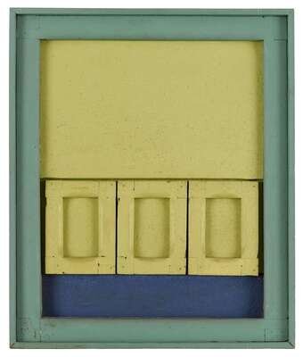 Signed and dated 1966 on upper stretcher verso, painted wood and canvas construction