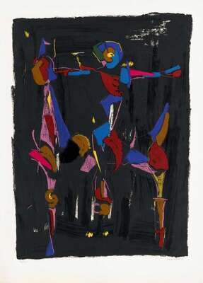 1975, pencil signed and numbered 17/75, with full margins; Albra, Turin, publisher. Color lithograph on wove paper.