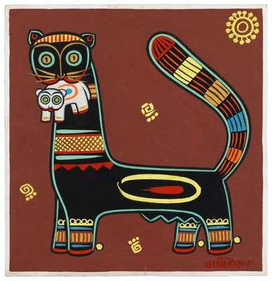 JAMINI ROY (INDIAN 1887-1972) CAT AND KITTEN