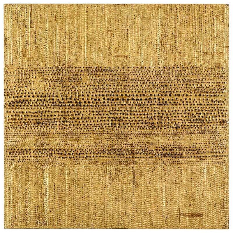 Perforated golden metal over painted wood