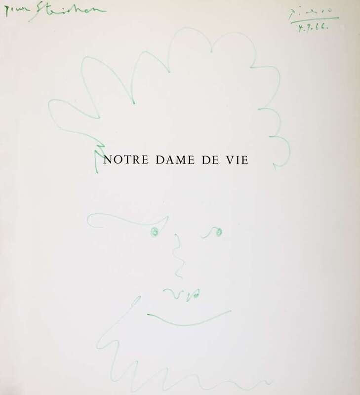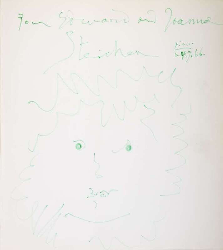 Both signed and dated 4.9.66 upper right, one dedicated "Pour Edouard and Joanne Steichen" and the other "Pour Steichen" in green ink upper center, ink on paper