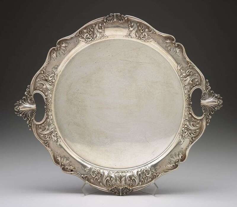 Impressive sterling silver tray dominick & haff, ny, 20th century
