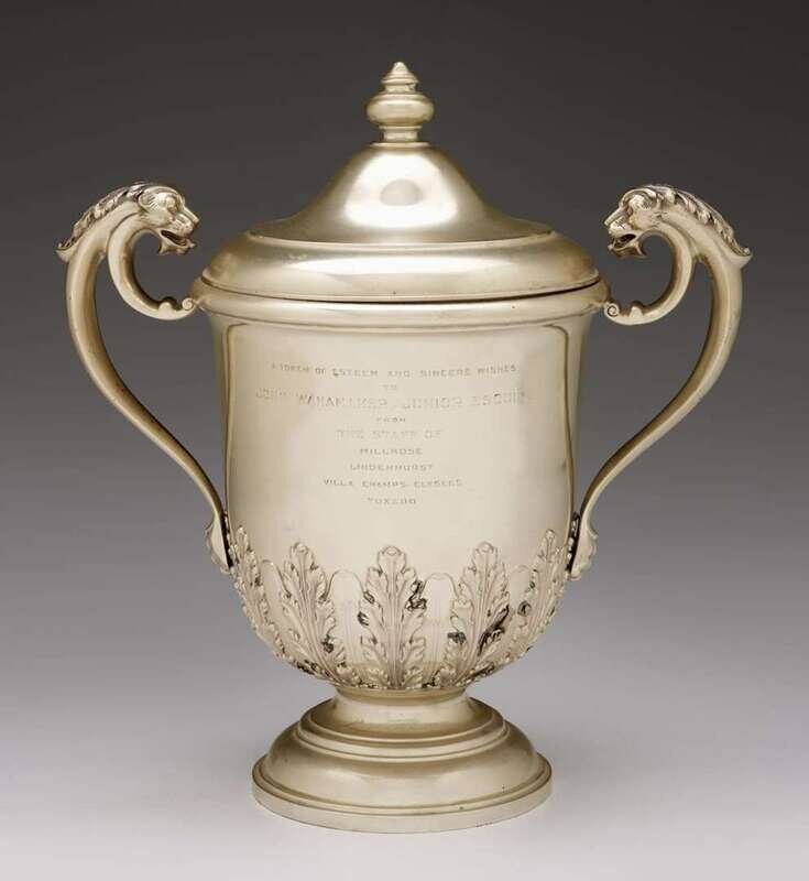 Impressive covered sterling silver trophy cup mt. vernon silversmiths inc., mount vernon, ny, 20th century