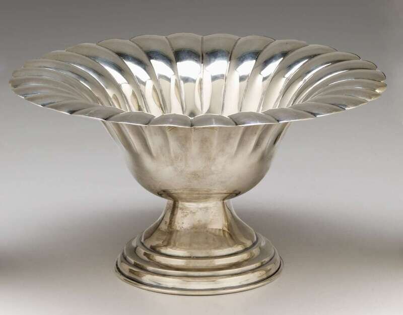 H: 6 in. Diam: 11 1/4 in. Weight: 21 1/2 troy oz.