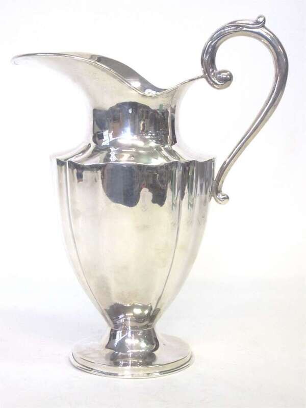 H: 10 7/8 in. (pitcher) Diam: 11 in. (tray) Total weight: 24 troy oz. (including handle)