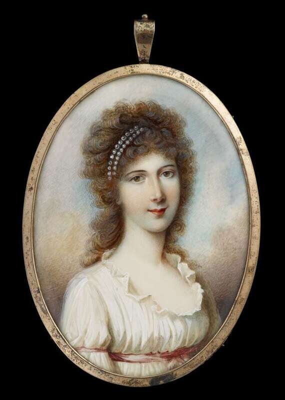 Anglo/Continental School 19th century miniature portrait of a young lady with pearls in hair