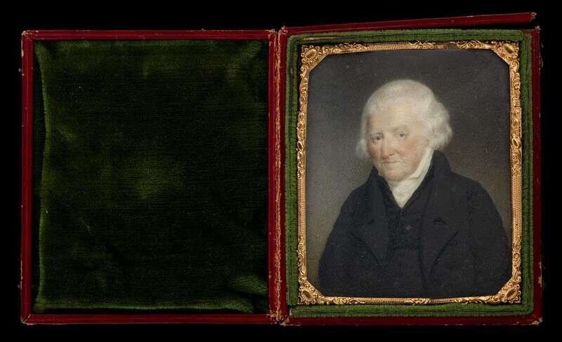 Inscribed in ink on verso, "Painted by S. Goodridge June 1826 Samuel Norton, aged 82," watercolor on ivory, in a rectangular red leather case.