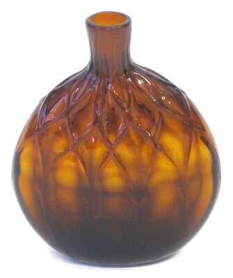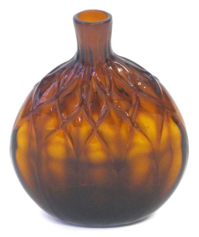 Blown amber flattened chestnut flask probably ohio, circa 1830
