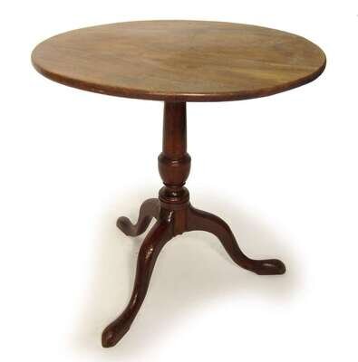 Circular top tilts on tapering urn form support on cabriole legs ending in snake feet.