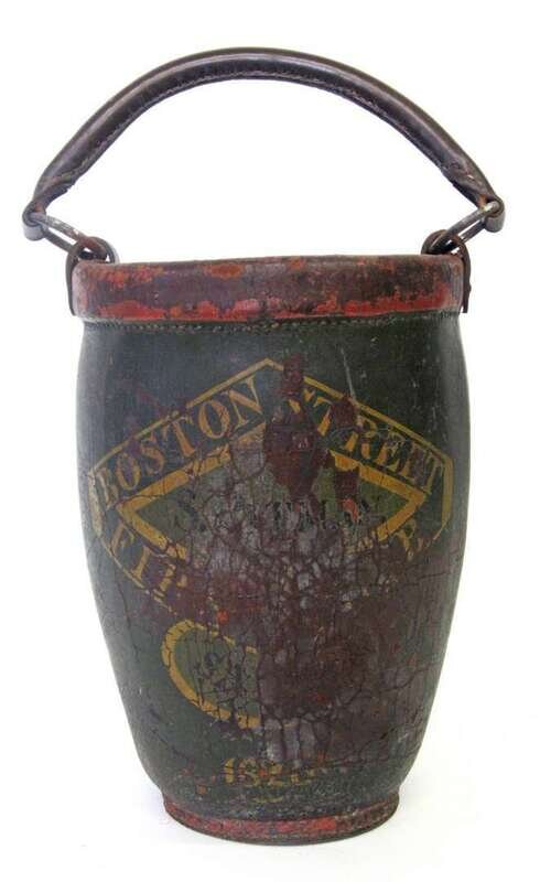Painted and decorated leather firebucket boston, massachusetts, dated 1826