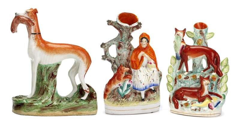 Including a hound with rabbit in its mouth, a spill vase with two foxes and bird prey, and a spill vase with Red Ridinghood.