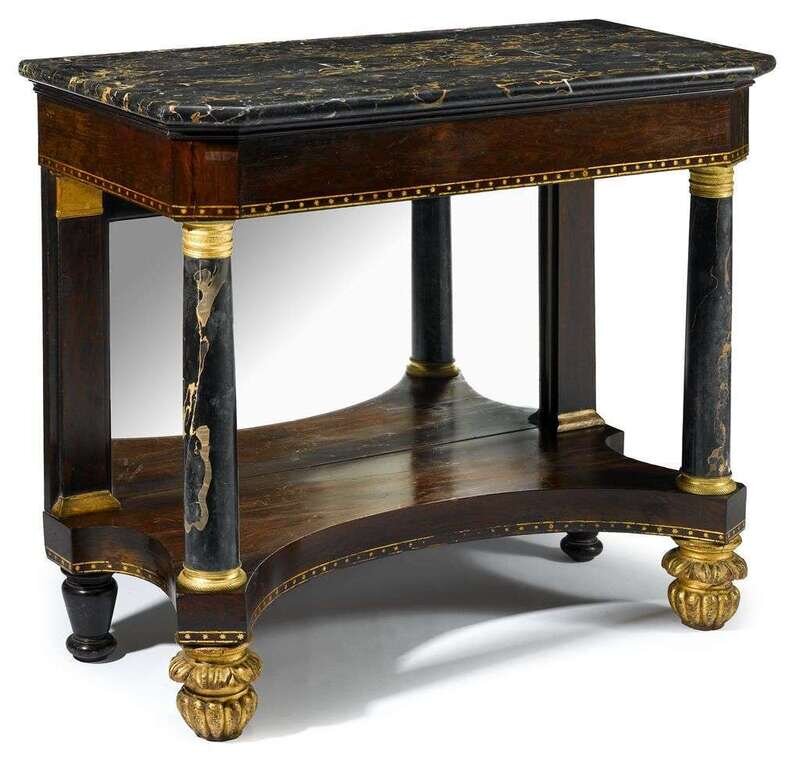 Classical marble and stenciled mahogany pier table new york, circa 1820
