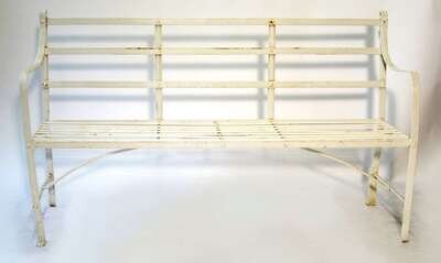 White painted strapwork iron garden bench late 19th century