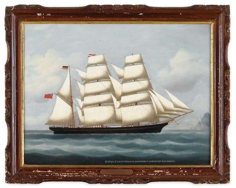 Chinese School 19th century "barque crested wave entering the port of hong kong"