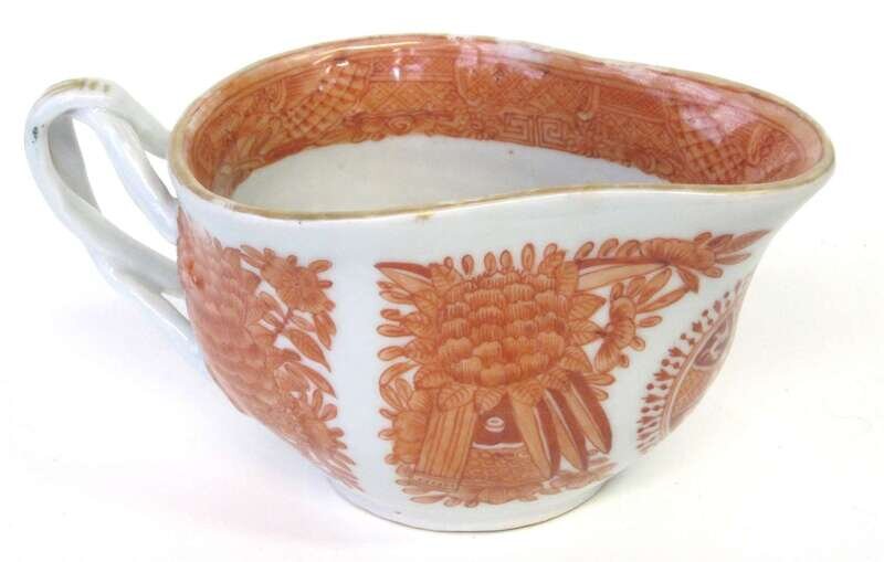 Chinese Export Porcelain orange Fitzhugh gravy boat 19th century