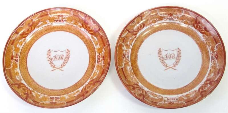 Pair of Chinese Export Porcelain orange Fitzhugh small plates 19th century