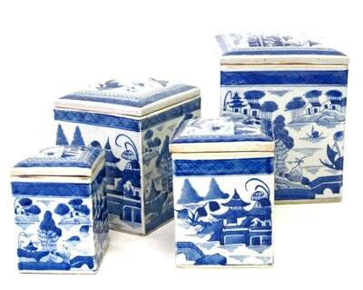 Four graduated Chinese Export Porcelain Canton covered jars 19th century