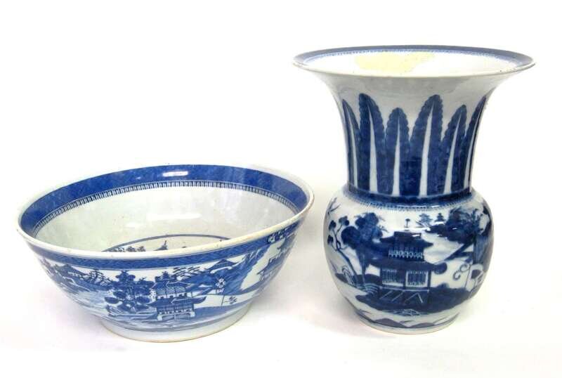 Chinese Export Porcelain Nanking punch bowl and Gu form vase 19th century