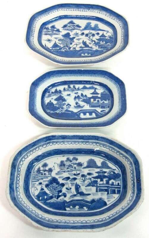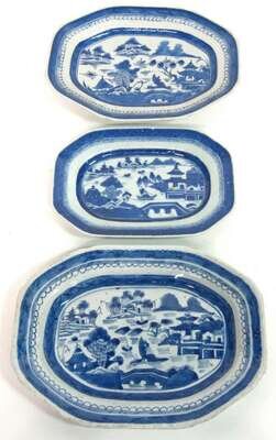 Three small Chinese Export Porcelain Canton platters 19th century