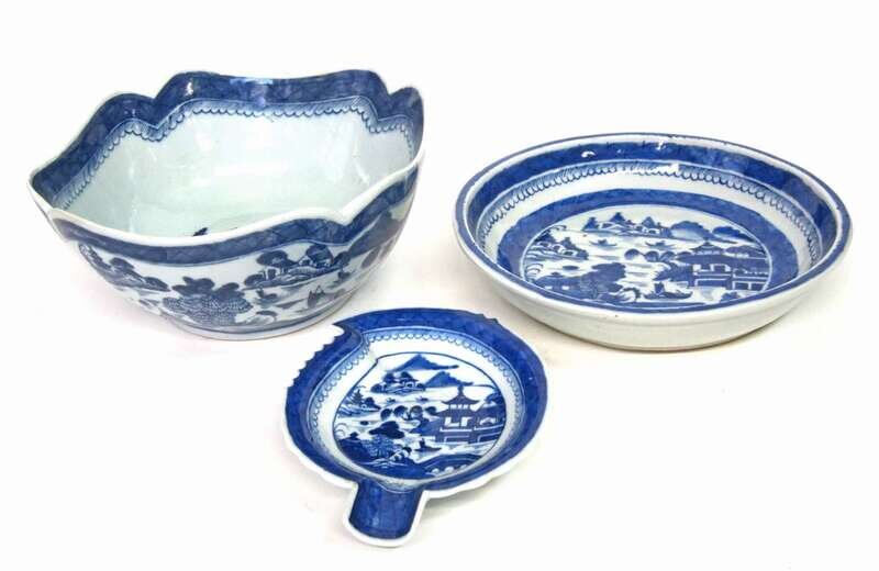 Including a bowl with notched corners and a shallow circular bowl; together with a leaf shaped dish.