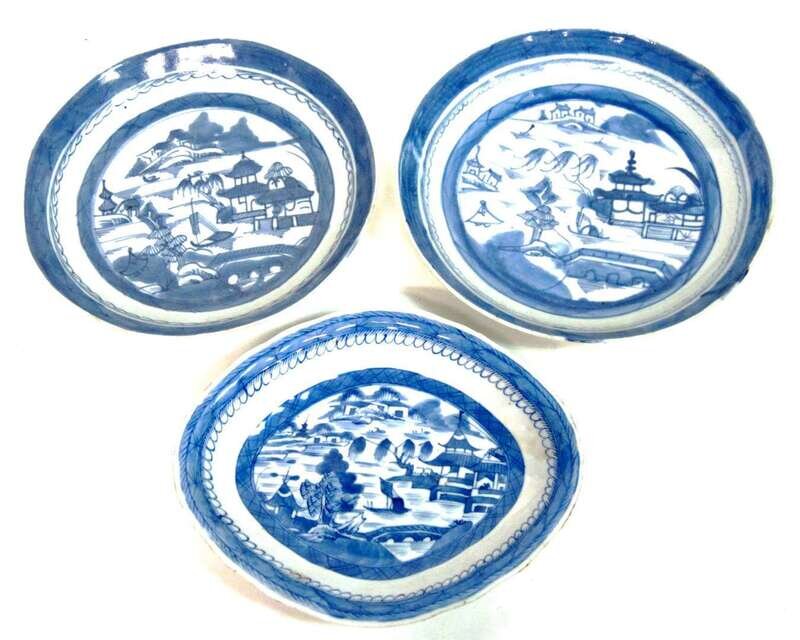 Three pieces Chinese Export Porcelain Canton serving ware 19th century